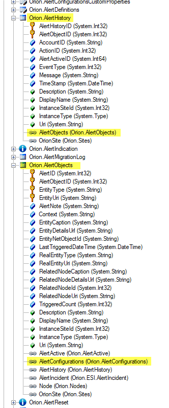 AlertActiveID, AlertObjectID, AlertID, AlertRefID, NodeID, objects, definations and so on,