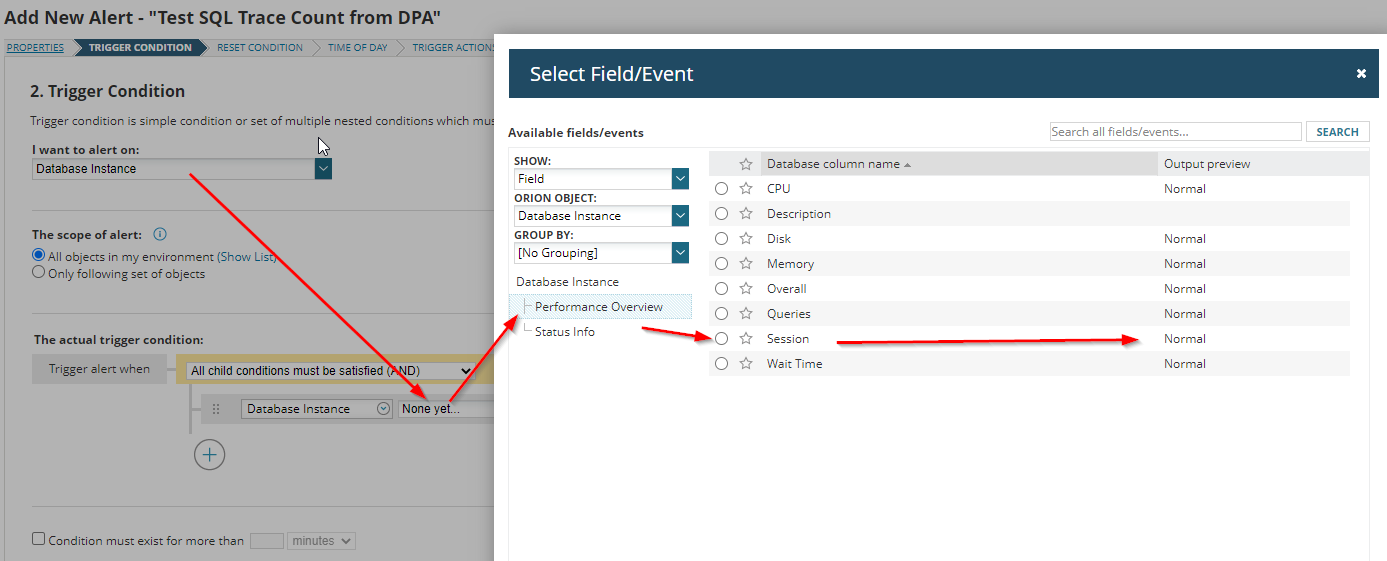 We have solarwinds orion and Database Performance Analyzer and we'd like to create alerts on data that is specific to DPA.