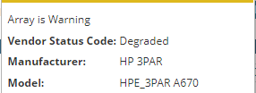 I recently added these storage array's into Orion's SRM and I'm receiving a message from all of them saying Degraded. This is from the Home page of SRM and I highlight an object with an exclaimation mark.