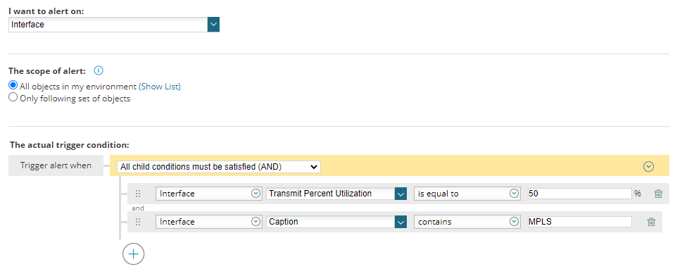 Our objective is to trigger and alert whenever a specific interface bandwidth utilization goes below a certain value.