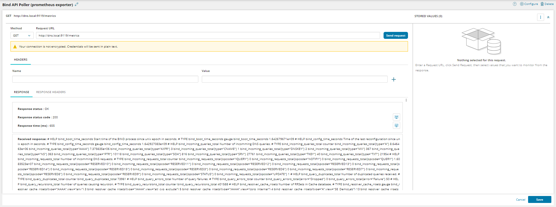 Anyway, if I'm trying to get a response with API poller from the exporter, I'm getting all metrics simultaneously, in one package.