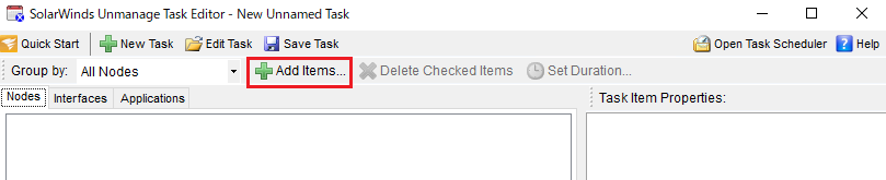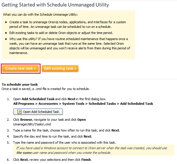 2. スタート> SolarWinds Orion> 以下のアイコンから「非管理スケジューリング機能(Unmanaged Utility)」を起動する