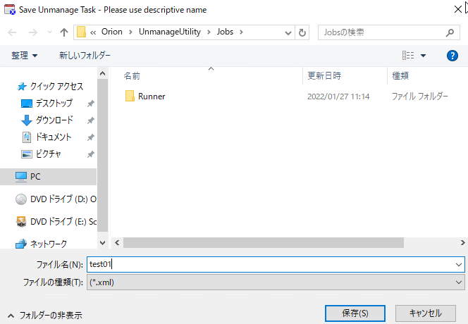 ・.xml ファイルは、非管理スケジューリング機能上に設定内容を保存する為に生成される (*従って、消さずに置いておく必要あり)
