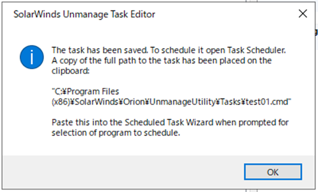 10. 以下のPopUpが表示され、同時にクリップボードにここに記載される.cmdファイルのパスが生成されるので、メモ帳などにPasteするのが良い