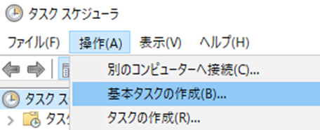 12. Windows タスクスケジューラが開くので、基本タスクの作成 をクリック