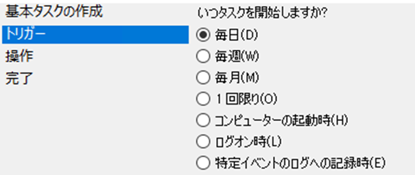 ・このトリガーを、Windowsタスクマネージャを利用して、指定の周期で定期的にキックさせることで、定期的に、ある一定期間のみ、非管理状態にする