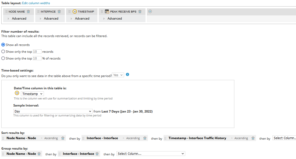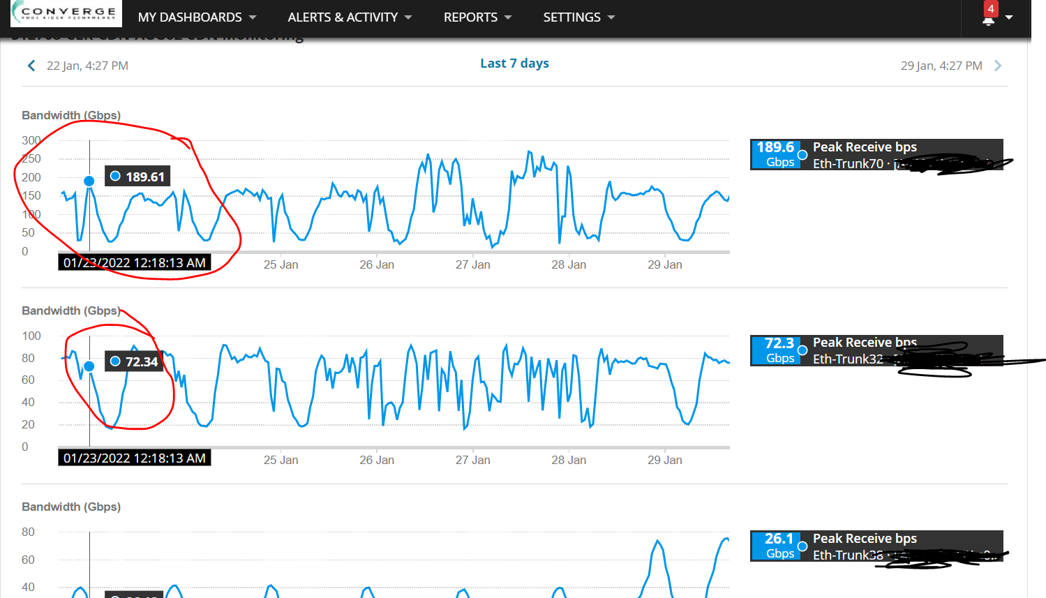Hi everyone, I created a simple chart that shows peak receive bps, I'm just wondering if I can generate a report that highlights the peak received bps per day for 7days? without manually pointing for every peak.