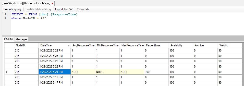 I have a node that fires off the Node Down alert daily and sometimes multiple times a day. The node does not actually go down and continues to function without issue. Following the KB article here: Node is up but the node down alert is triggered (solarwinds.com), I have the output below. It appears to just show "NULL" at the time it is reported down. Any reason on why this would continue to happen?