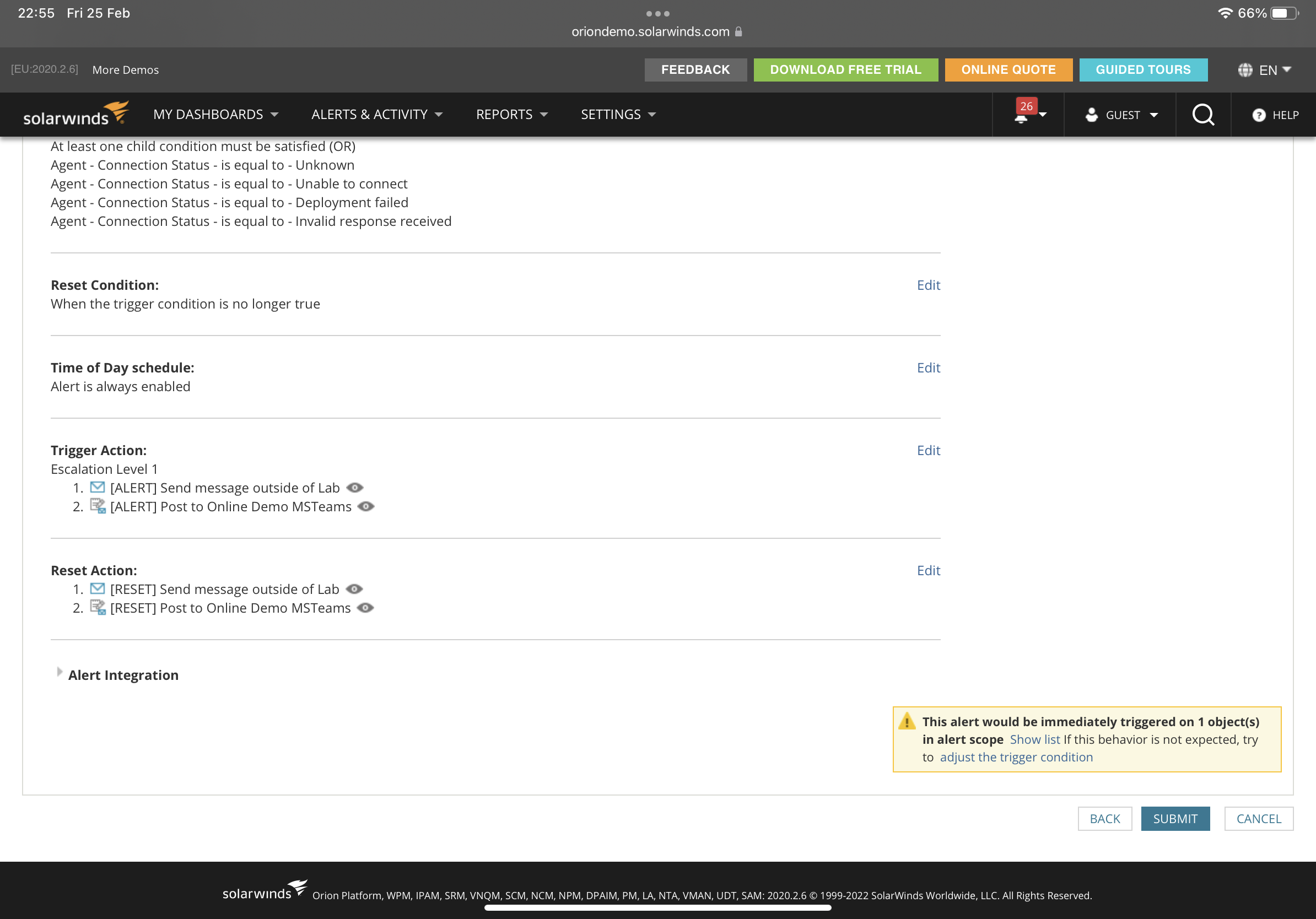 In the latest release of NPM 2020.2.6, in the Edit Alert Summary Tab, I no longer see the pop-up "This alert would be immediately triggered on ??? object(s) in alert scope (see below). Am I missing something obvious, or has this feature been removed?