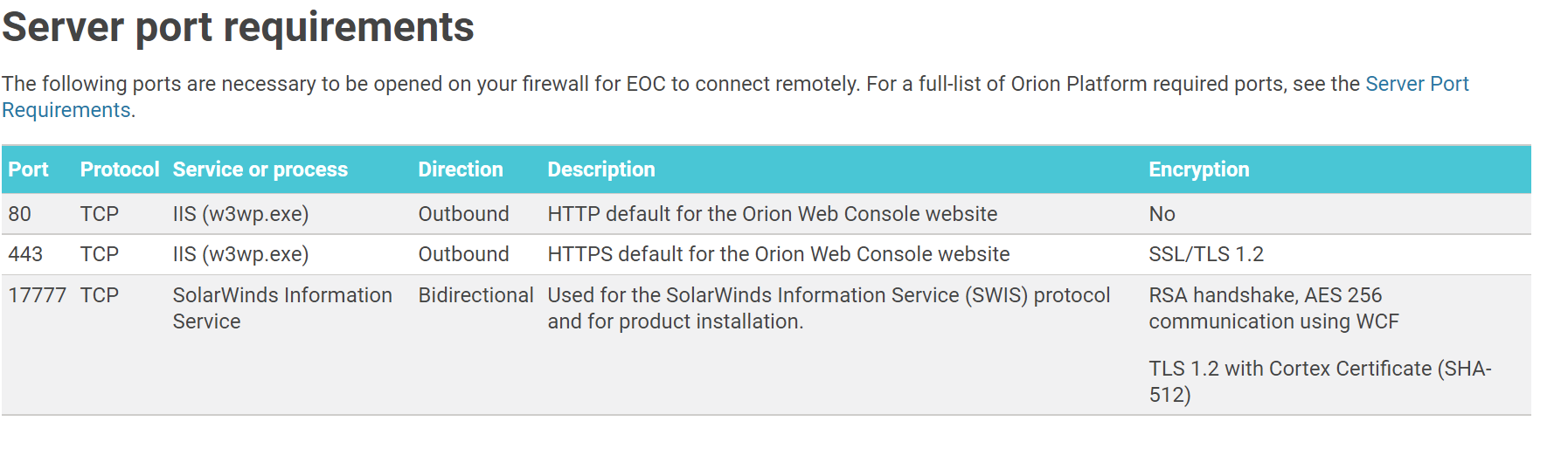 I see from the Orion port requirements doc that EOC requires port 80, 443, 17777
