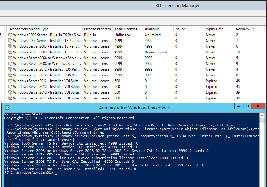 $fileName = (Invoke-WmiMethod Win32_TSLicenseReport -Name GenerateReportEx).FileName