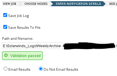 "Unable to save results to file "E:\Solarwinds_Logs\Weekly Archive - "Client_Name_Here" 2022-02-28 Config Backup.htm": Access to the path 'E:\Solarwinds_Logs\Weekly Archive - "Client_Name_Here" 2022-02-28 Config Backup.htm' is denied."