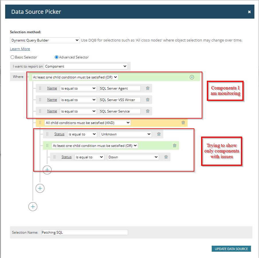 We have an issue where we patch our SQL nodes and when they come backup up some of the SQL services are not started and that causes some issues with SQL. I put together a SQL services monitor that monitors SQL Server Agent, SQL Server Service, and SQL Server VSS writer on all of our SQL nodes. This is a bit of a starting point and we will be adding additional service monitors once we ID what services we need to monitor.