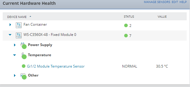 I have 2 cisco 3560 switches and while on one it shows 14 hardware sensors , on 2nd one it only shows 7.