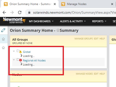 Solarwinds didn´t ´ present group values in main dashboard, only presented status loading, and don´t deploy Group values.