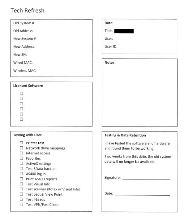 Im wanting to create a ticket for techs to use when we have a tech or system refresh. basically when the tech replaces the system, there are some parent checklist items like "Standard Configuration" and sub items that need to be checked of saying these items have been done so far. example in the thread.....