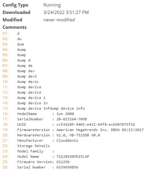 <Command Name="DownloadConfig" Value="dump device info${IgnoreEcho}" />
