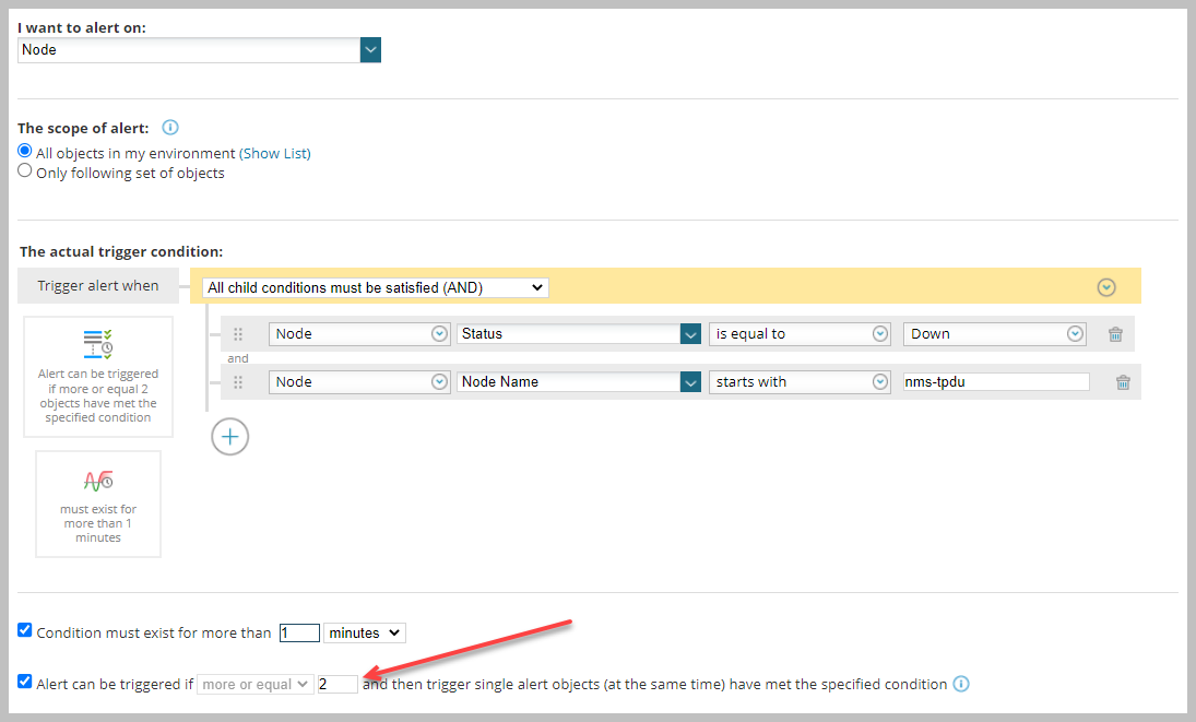 Currently my alert is only showing me the last node down (that was equal of greater than my counter (2))