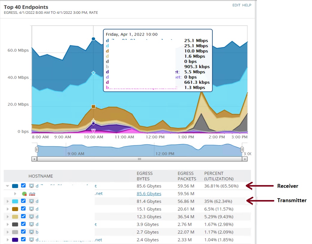From the Top XX Endpoints chart, I see two entries with % utilization. However, one of them is sending and other is a receiver.