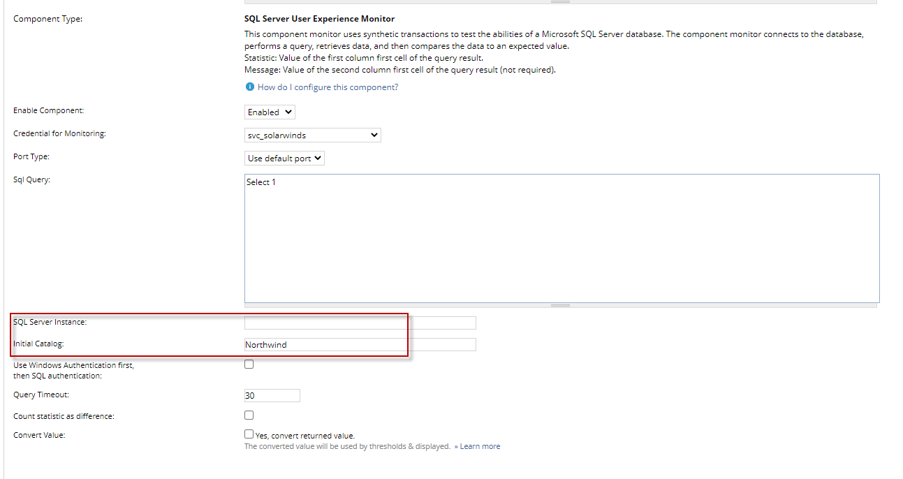 Looking at the component configuration, it all seems relatively simple, but the "SQL Server Instance" field confuses me a bit. We have tons of SQL servers and instances this template will be applied to. Does this field mean I need to create a component for each and every instance on each SQL server the template will be applied to? The same question may apply to the "Initial Catalog" field.
