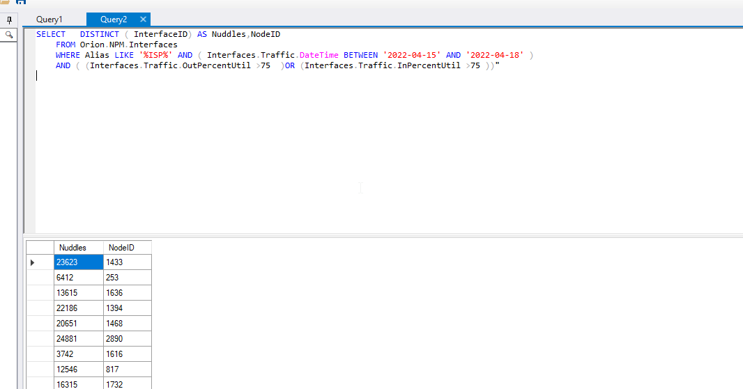 SELECT DISTINCT ( InterfaceID) AS Nuddles,NodeID