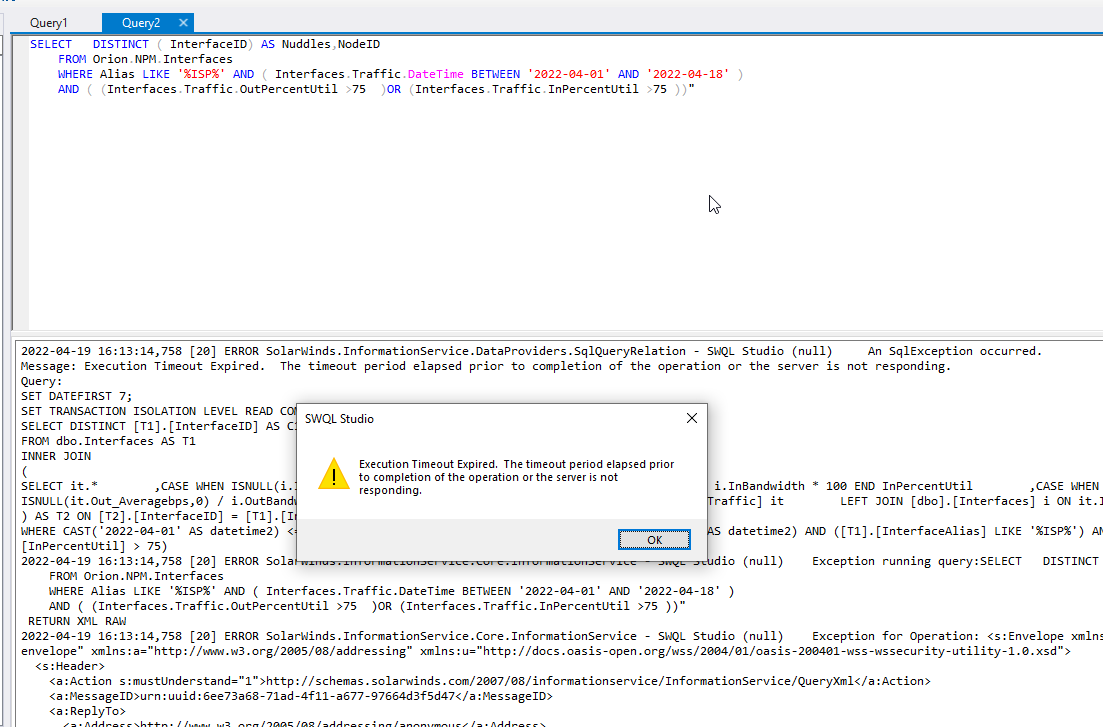i have this query which is suppose to provide the nodes which has percentage utilization above 75% for the last month, this query is run on a monthly basis, it was working previously but now the query has started to time out for some reason.