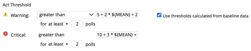 Baseline threshold formula for Critical state: 3 * ${MEAN} + 3 * ${STD_DEV}