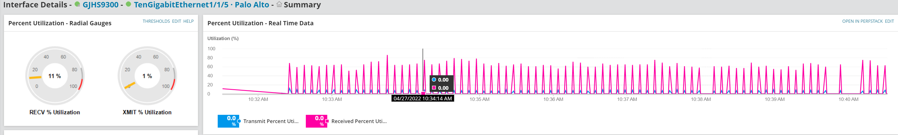 I have a question about the graphs when I'm monitoring an interface. Below is an example. This is the interface on at Cisco 9300 that is receiving all my internet traffic from my Palo Alto firewall.
