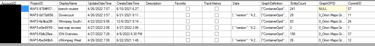 I have tried a number of possibilities to get an output. I referenced this article https://documentation.solarwinds.com/en/success_center/orionplatform/content/core-fusion-swql-data-model-examples.htm for some examples and they do work but when I try changing Orion.Nodes to Orion.Maps or Orion.Maps_Projects or even Orion.NodesData.