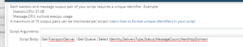 So Echange admins would like to see the below powershell integrated to SAM SolarWinds