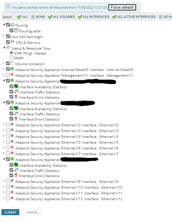 I have a Cisco firewall that is not giving any data for the interfaces on it.