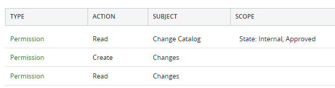 The role has the following permissions for Changes and the Change catalog: