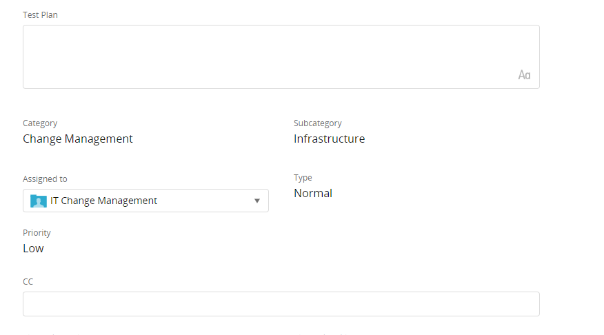 And here's the same Change Catalog item viewed as an Administrator: