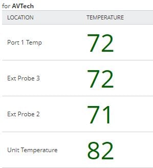 For the unit temperature, the only value I was able to get to work was Celsius. Since I am based in the US, I needed to convert this to Freedom units, so my conversion on this is CtoF({AVTech_Unit_Custom_Poller}/100)
