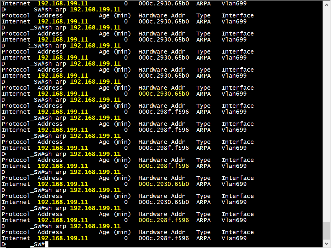 On what you are describing, the ARP table simply switches MAC address and does not really show both value at the same time, is that correct?