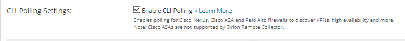 SELECT s.NodeID, n.Caption, n.Description, s.SettingName, s.SettingValue, s.NodeSettingIDFROM Orion.NodeSettings AS s JOIN Orion.Nodes AS n ON s.NodeID = n.NodeIDWHERE n.Description LIKE '%Nexus%' AND SettingName = 'CLI.Credential'