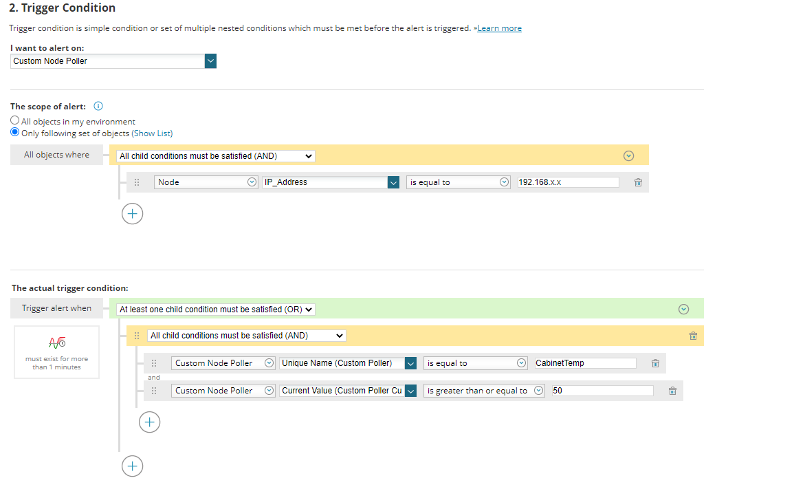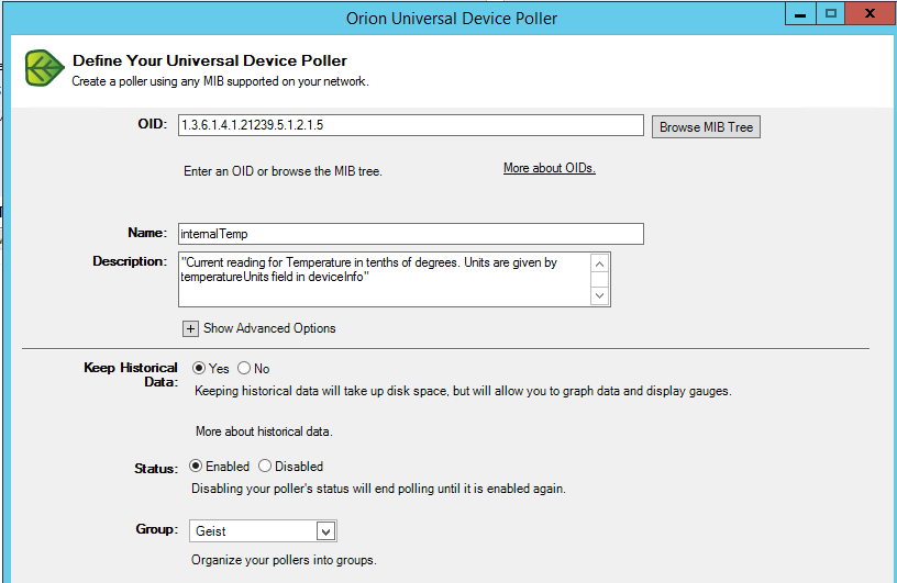 We have installed a Watchdog 100P environmental monitor and would like to set it up to send alerts to solarwinds. The issue we are running into is that No matter the combination of settings we cannot get Solarwinds to send alerts. We are polling the device in Solarwinds with no issues, and we are seeing the temp variables like we should but cannot get the alerts to work.
