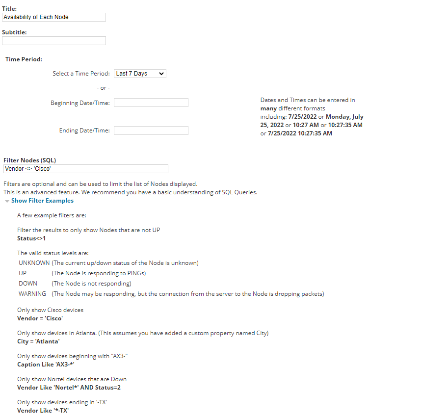 The availability of switches (filtered by Vendor) gives me a list, which is what I require, But I'd like to be able to sort in reverse order, so they can see any that's been down first with it's % uptime for the last 7 days. This is the filter I'm not sure how to do.