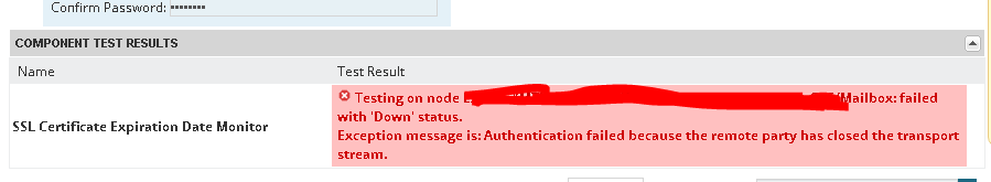 I am having this error on my certificate expiry monitoring which I am using to monitor the MS Exchange certificates. Only a certain nodes are having this issue out of a sudden. I am able to telnet to the node 443 port from the SW main server but still, the test returns fail.