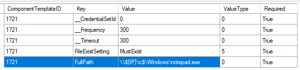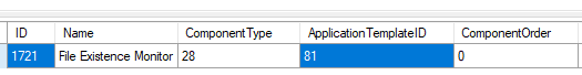 Where in the database would I find the details for file paths being monitored by a File Existence Monitor component? I am in the process of building detailed reports for our nodes, applications, and components we have configured.