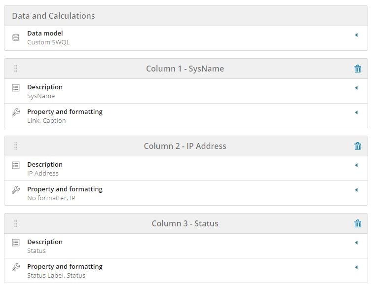 Hello, here a small but fuctional widget for modern dashboards that provides a view for a set of nodes, its ip details and status, you can click on top of SysName and it will take you to the nodes details page.