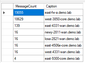 I have been trying to figure out how to create a report or SWIS query to tell me the number of syslog events in the past 24 hours each of my nodes have reported to syslog. When I look at the Syslog in Solarwinds, it has the count but only for the first 10 or so alphabetically. I want to see something that would let me know how many syslog events have happened in the last X hours.