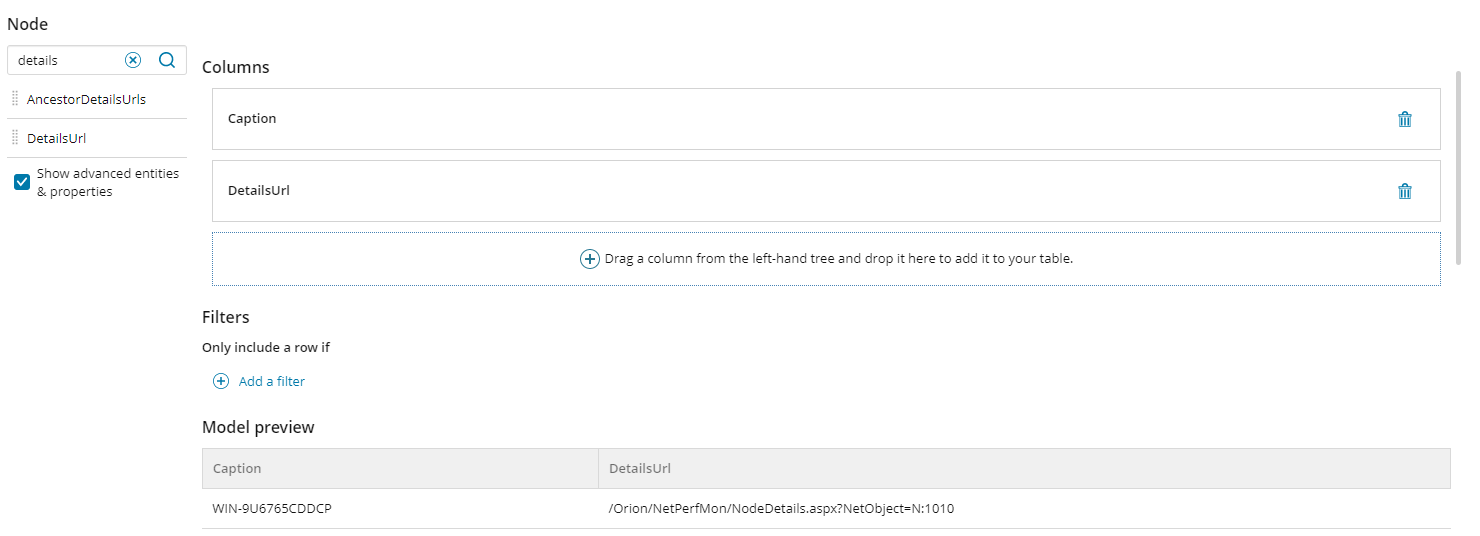 The Details URL needs to contain an actual URL, so it also needs to be a part of your dataset that you are returning.