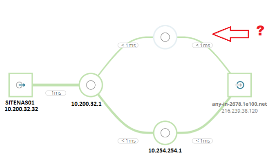 Hi all, we are using SolarWinds NetPath on a trial and when running a netpath job from a site esxi host/vm to the internet to check for connectivity we noticed that an "extra hop" shows up and goes away about every 5 minutes plus or minus a minute. This is odd to us because we are supposed to be point to point on our ATT mpls circuits back to our main office. Has anyone seen this before? We have 32 other remote sites and none so far have shown this behavior.