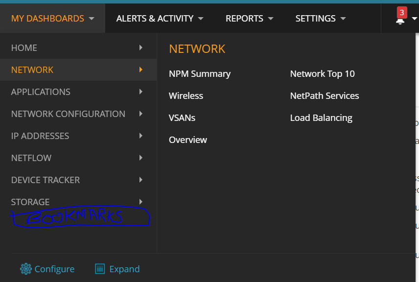 Our aim is to have Solarwinds be the single pane of glass, therefore we want to have the bookmarks for external sites be in a menu on Solarwinds, appear under the "My Dashboards" menu at the top