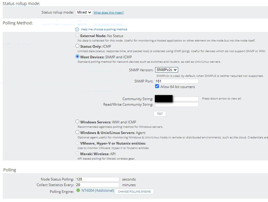 My device is configured for polling for statistics every 20mins as you can see on it's properties: