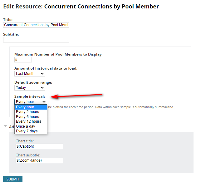 I tryed changing my polling to 5min or 10 minutes, but that doesn't affect my graphs. And if I edit the "Concurrent Connections by Pool Member" widget, I only see these options: