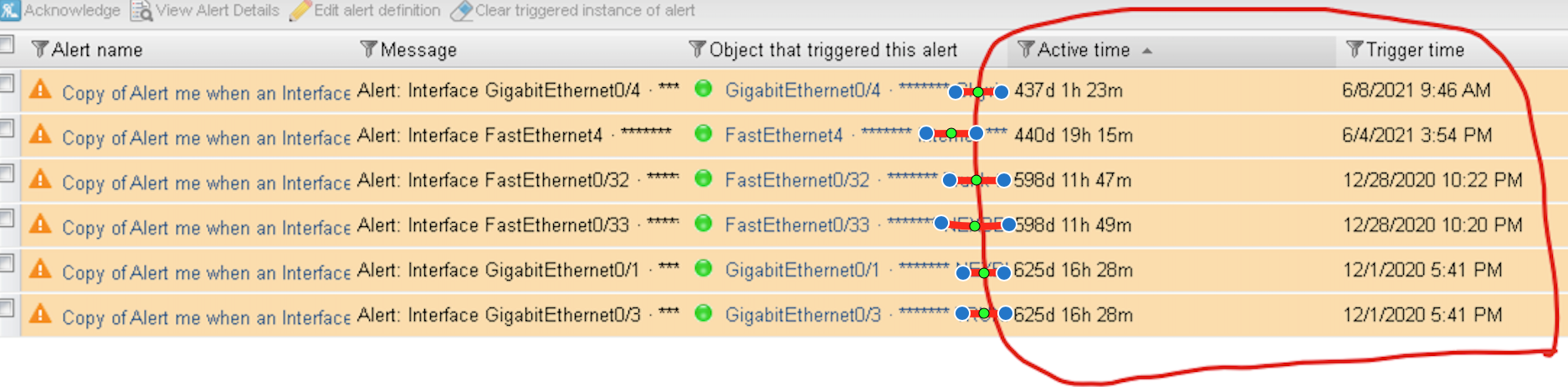Looks like those alerts triggered more than a year ago and not today. Looking at "active time", thats more than a year.