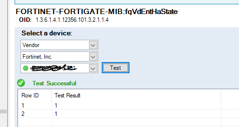The first trick is to ensure your HA pair of Fortinets are set up with their own management address - that way you can monitor the state of each firewall independently.You will also need to create a UnDP using the OID: 1.3.6.1.4.1.12356.101.3.2.1.1.4 (fgVdEntHaState), and its possible results are: