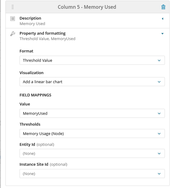 I like to use modern dashboards to get a quick overview. I've used the table widget and set up a field for Memory used. It works great, except it doesn't change depending on the custom thresholds I've set up on those nodes.